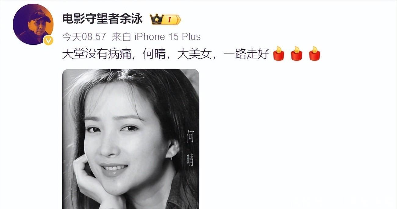 何晴演过不少经典角色,《三国演义》的小乔、《西游记》的怜怜,《水浒传》李师师,《红楼梦》秦可卿,几乎四大名著都有她。她最后一次露面是今年跟傅艺伟一起吃饭,照片里人瘦了但看起来状态不错。